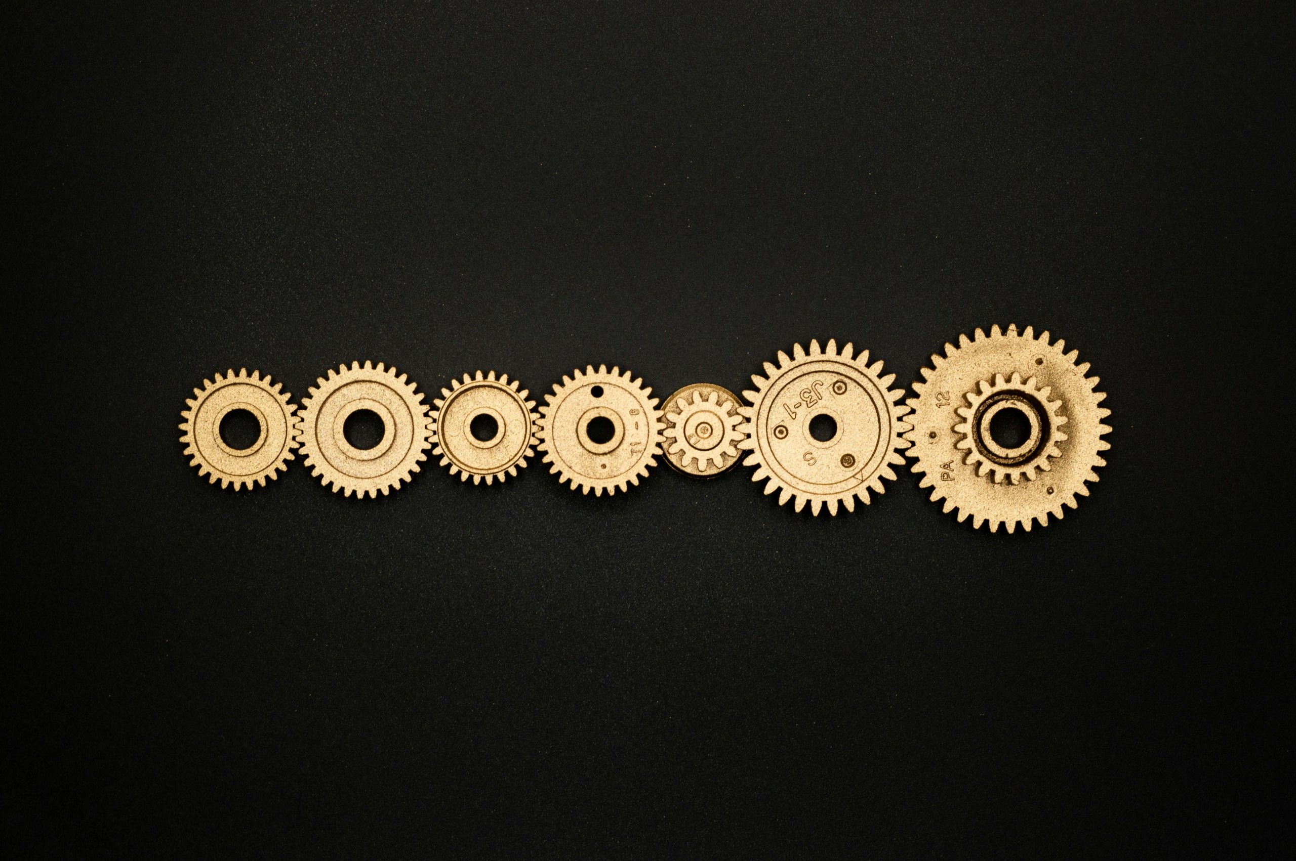 An Artistic Arrangement Of Golden Gears On A Dark Backdrop, Symbolizing Mechanics And Cooperation.